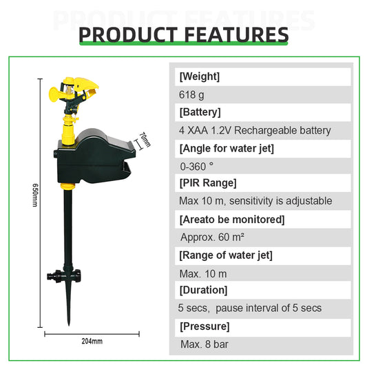 Motion Activated Sprinkler with Day & Night Detection Modes Water Jet Animal Repellent with Solar Panel Bird Heron Cat Repellent Garden Wild Animals for Yard#31012L